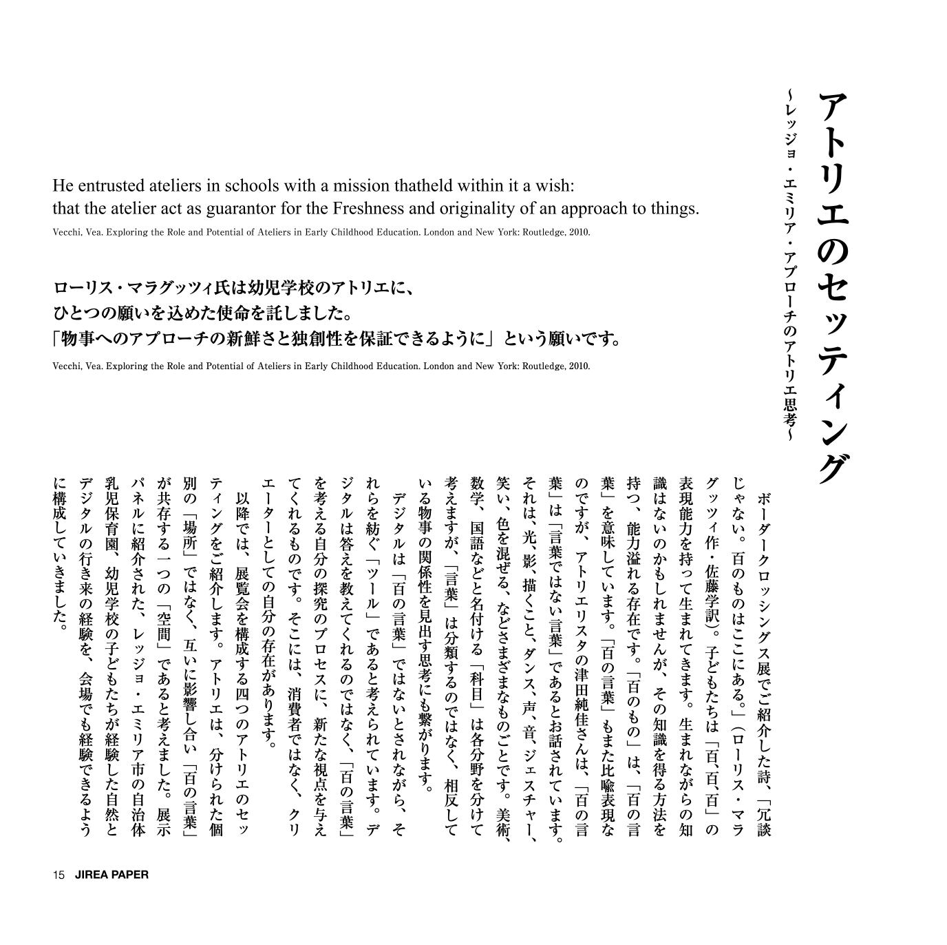 発行:JIREA(Japan Institute for Reggio Emilia Alliance)